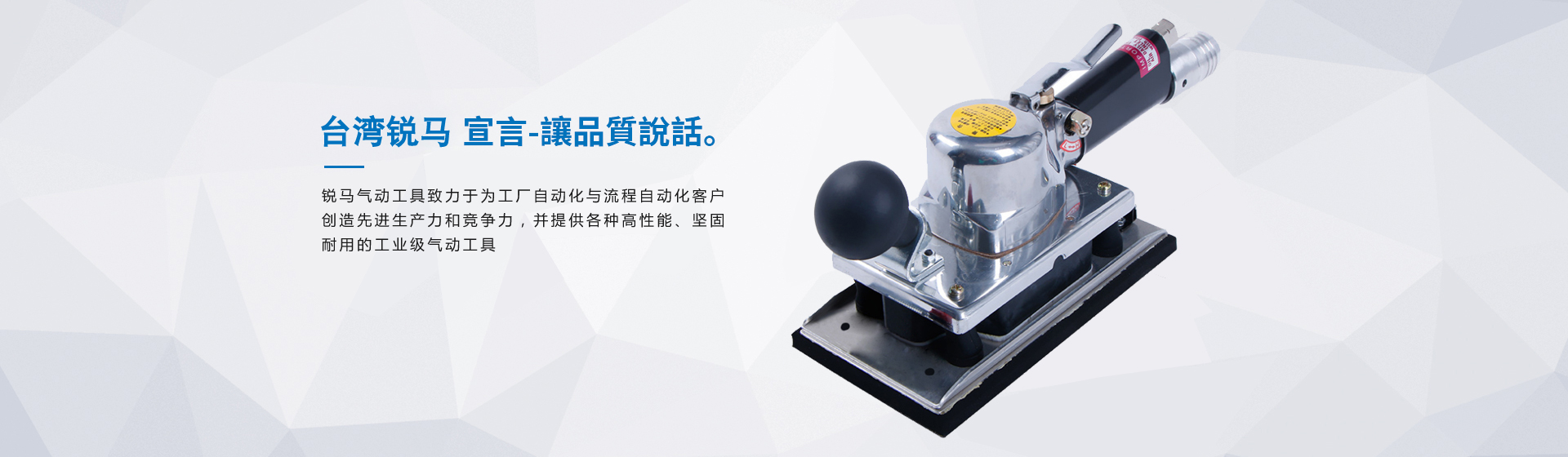 銳馬氣動(dòng)工具廠家是臺(tái)灣專業(yè)制造氣動(dòng)工具廠"筌誠(chéng)機(jī)械工業(yè)",30多年來致力于氣動(dòng)/電動(dòng)工具領(lǐng)域之研發(fā),生產(chǎn)和銷售,努力提升本身產(chǎn)品價(jià)值,在臺(tái)灣氣動(dòng)工具制造領(lǐng)域始終處于領(lǐng)先地位,并成功銷往國(guó)際市場(chǎng)。